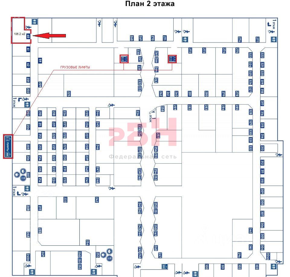 - помещение имеет преимущественное расположение, рядом с отдельным входом в здание, наличие окон в помещении добавляют естественного освещения и служат для дополнительного проветривания данного помещения, грузовые лифты позволяют поднять товар от места разгрузки автомобилей любых размеров;