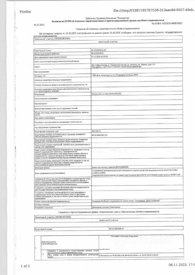 Должник: Ральченко А.А., собственник: Ральченко А.А. Лот: Здание (жилое), площадь 37,8 кв.м., кадастровый номер: 66:65:0301046:119, земельный участок (земли населенных пунктов, для индивидуального жилищного строительства), площадь 1662 кв.м., кадастровый номер: 66:65:0301046:30, Нижнесергинский район, рп. Бисерть, ул. Ленина, д. 119, н/ц: 855100 р., з-к: 855 р., код: 0014, рег. 39-3095/25