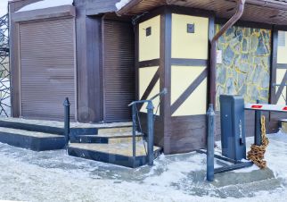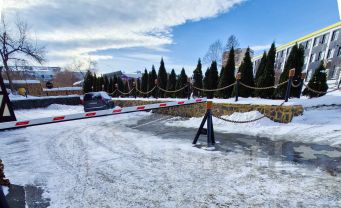 • С торца здания расположена гостевая бесплатная парковка. Закрытая парковка со шлагбаумом перед зданием.