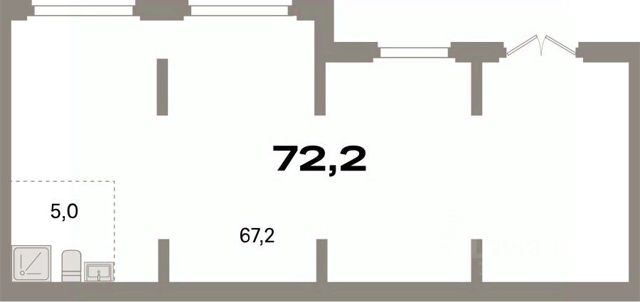 Помещение свободного назначения на 1 этаже, общая площадь 72.2 кв.м., без отделки. Стоимость помещения 15,160,000 руб., цена за кв.м 209,972 руб.