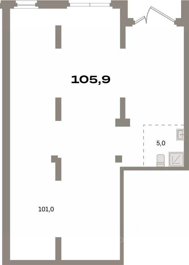 Помещение свободного назначения на 1 этаже, общая площадь 105.91 кв.м., без отделки. Стоимость помещения 23,490,000 руб., цена за кв.м 221,792 руб.