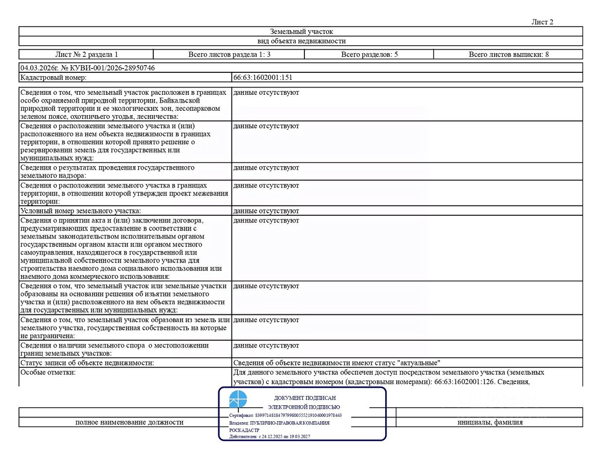 Лот 2 продажа земельного участка с кадастровым номером 66:63:1602001:151, расположенного по адресу: Свердловская область, Сухоложский район, деревня Шата, улица Сиреневая, 43 (категория земель земли населенных пунктов), с разрешенным использованием для индивидуального жилищного строительства, общей площадью 1 375,0 кв.м., территориальная зона Ж3 ЗОНА ЗАСТРОЙКИ ИНДИВИДУАЛЬНЫМИ ЖИЛЫМИ ДОМАМИ В СЕЛЬСКИХ НАСЕЛЕННЫХ ПУНКТАХ (далее земельный участок) в границах, указанных в выписке из Единого государственного реестра недвижимости об объекте недвижимости.