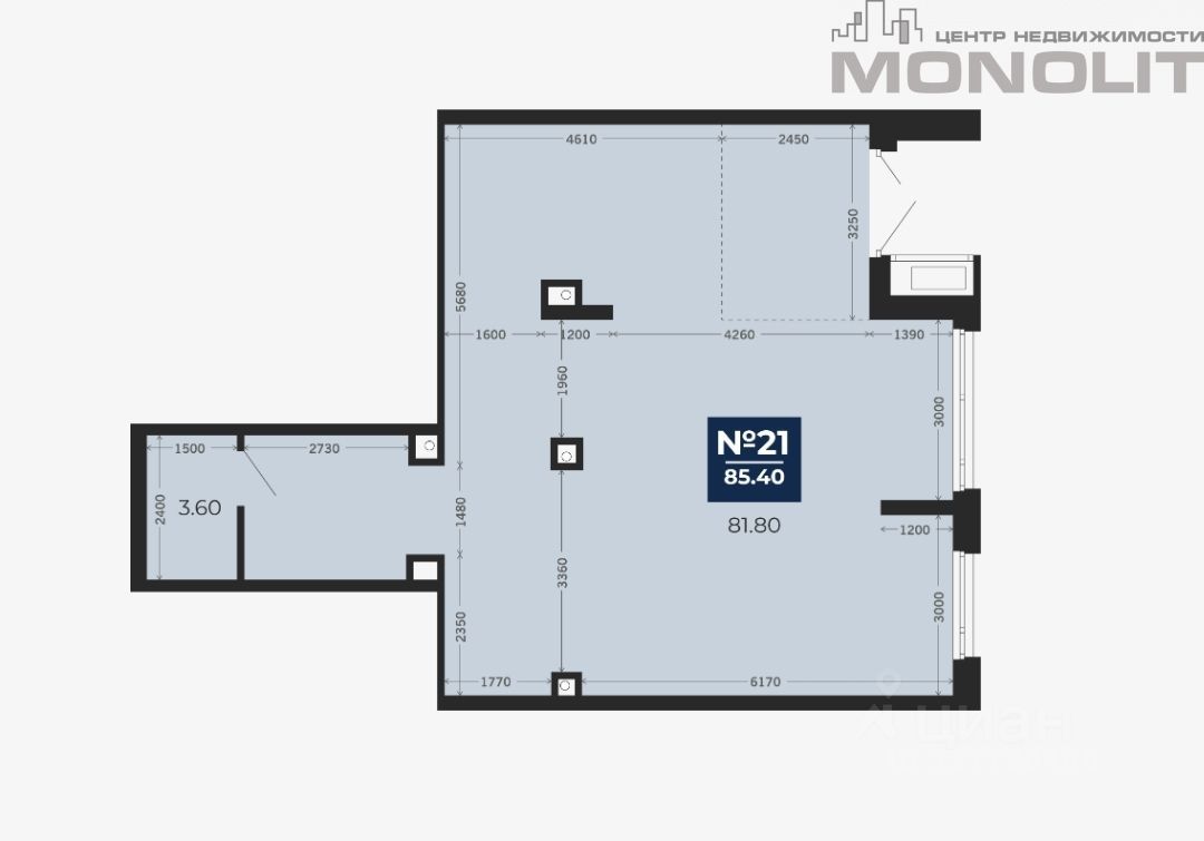 В продаже также другие варианты помещений в этом комплексе от 40 метров, есть возможность объединения.