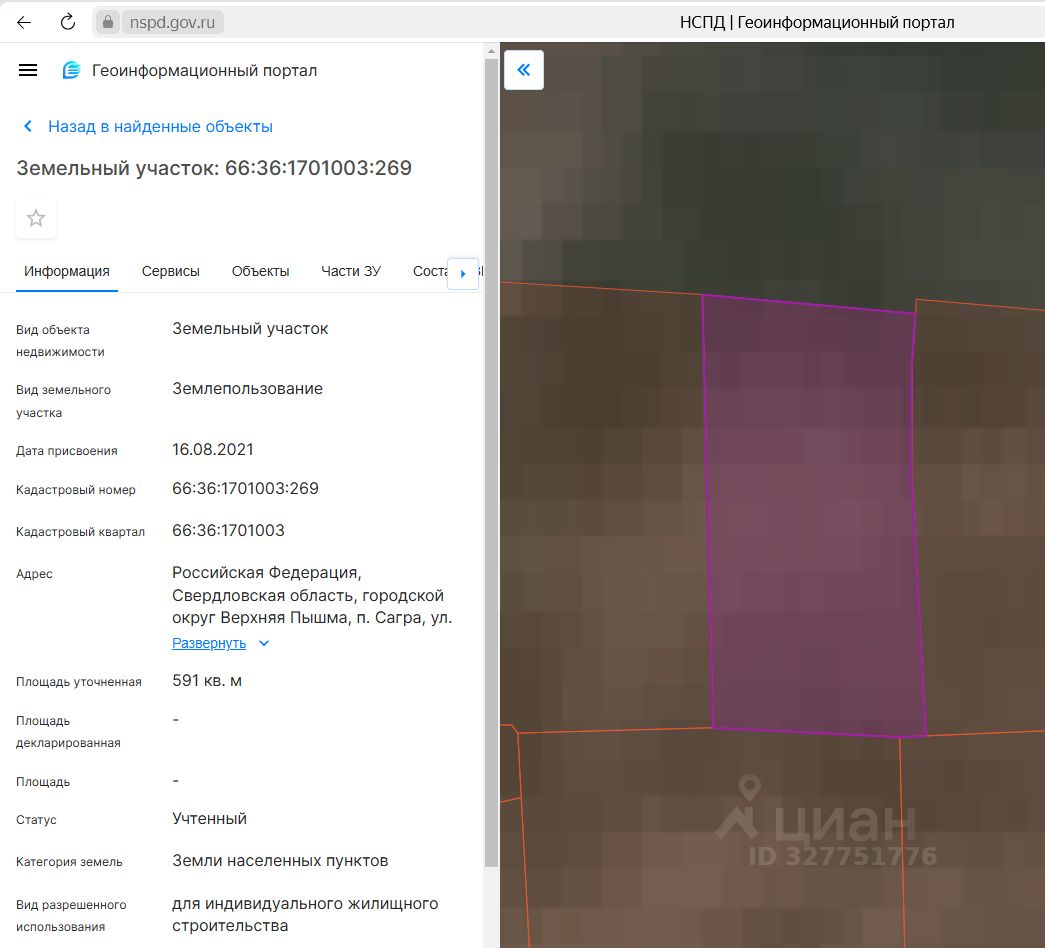 Продажа земельного участка с кадастровым номером 66:36:1701003:269, площадью 591 кв.м., расположенного по адресу: Российская Федерация, Свердловская область, городской округ Верхняя Пышма, п. Сагра, ул. Подгорная, земельный участок 1Г, категория земель: земли населенных пунктов, разрешённое использование: для индивидуального жилищного строительства, находящегося в жилой зоне индивидуальной застройки (территориальная зона Ж-1).