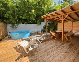 На территории также расположен гостевой дом с кухней-гостиной, спальней, гардеробной, душевой, санузлом и террасой. Въезд на территорию организован через откатные ворота с пультом управления, предусмотрена гостевая парковка.
