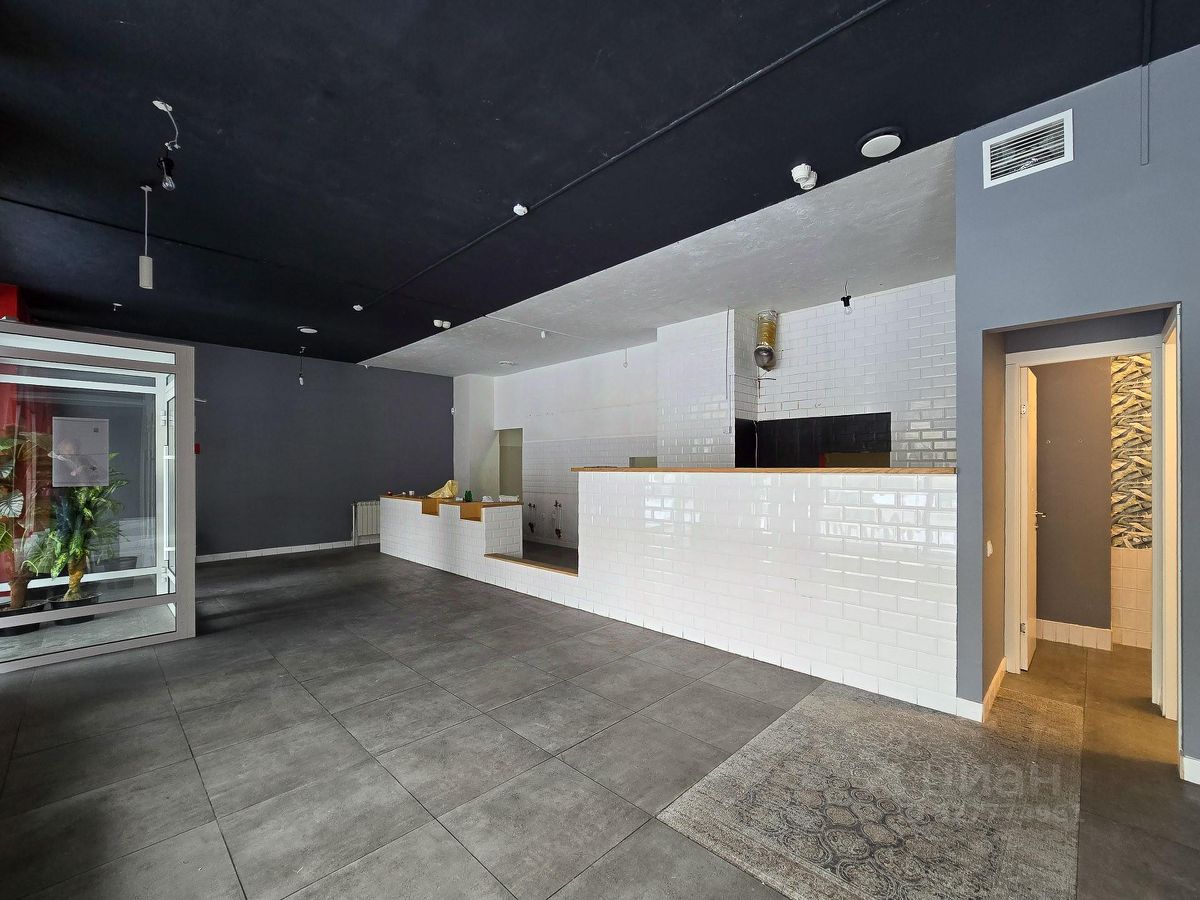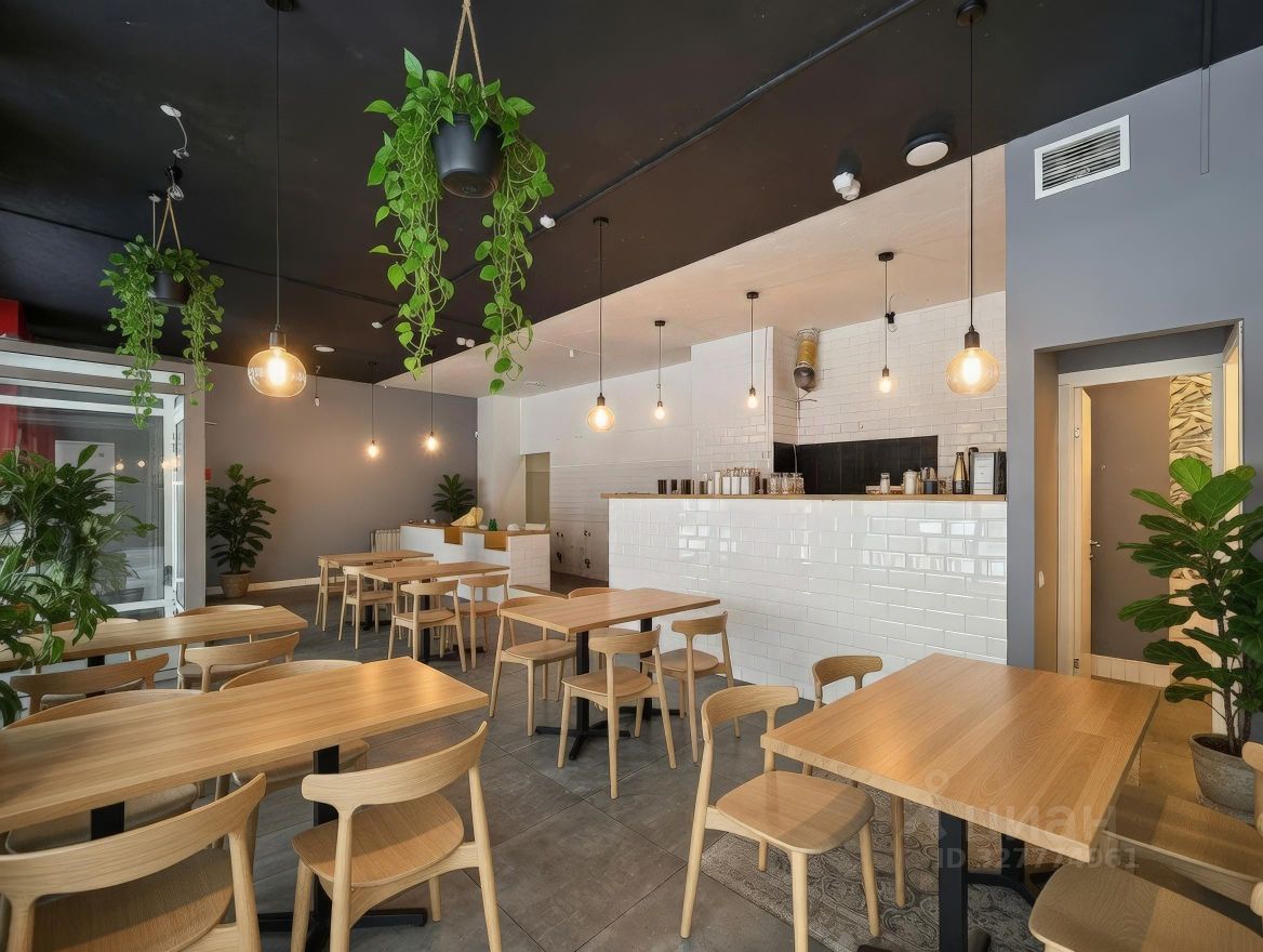 • Зал: Стильный опен-спейс, панорамные витринные окна, высокие потолки. Есть готовая барная стойка и стеклянный тамбур на входе.