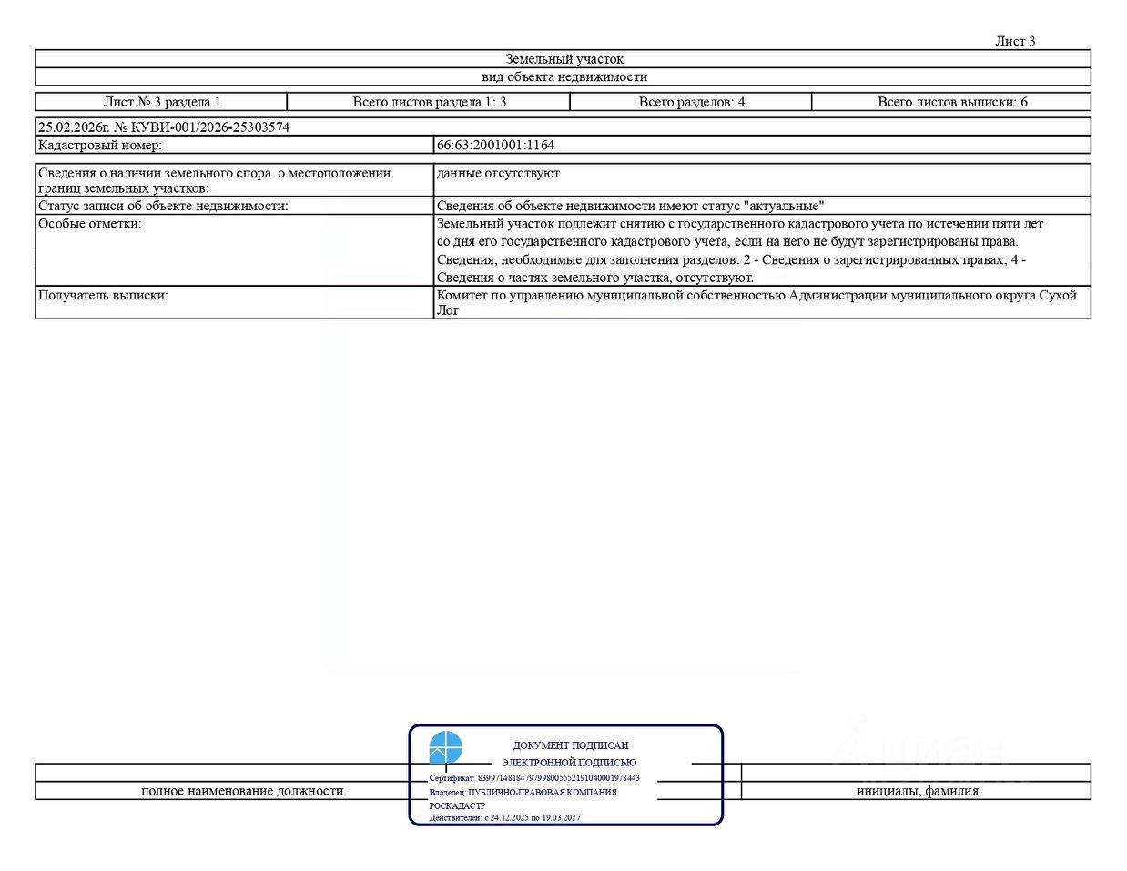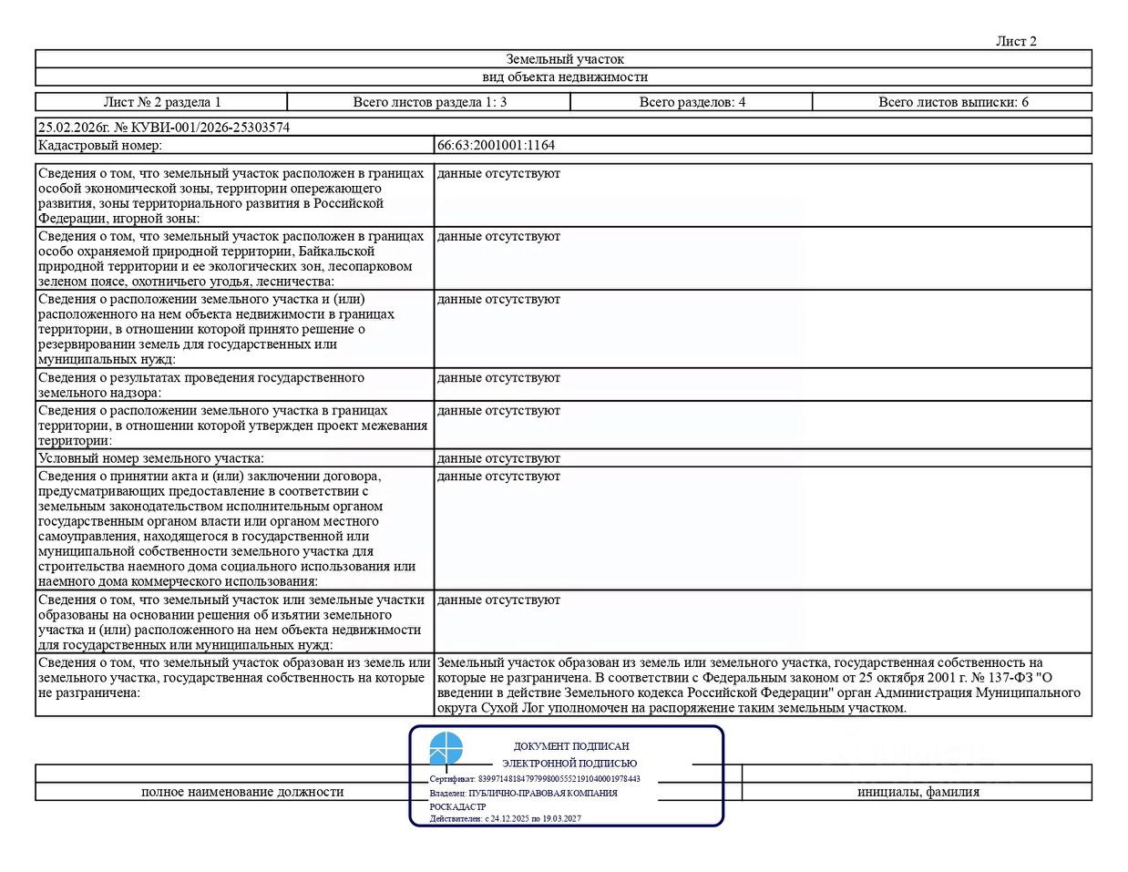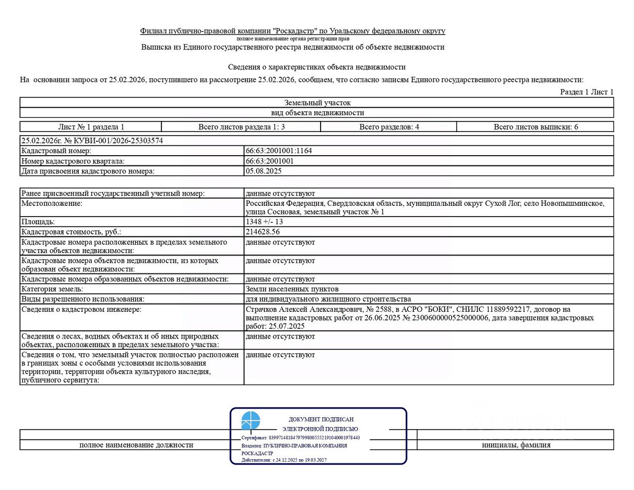 Лот 1 продажа земельного участка с кадастровым номером 66:63:2001001:1164, расположенного по адресу: Российская Федерация, Свердловская область, муниципальный округ Сухой Лог, село Новопышминское, улица Сосновая, земельный участок 1 (категория земель земли населенных пунктов), вид разрешенного использования для индивидуального жилищного строительства, общей площадью 1 348,0 кв.м, территориальная зона Ж3 зона застройки индивидуальными жилыми домами в сельских населенных пунктах (далее земельный участок) в границах, указанных в выписке из Единого государственного реестра недвижимости об объекте недвижимости.