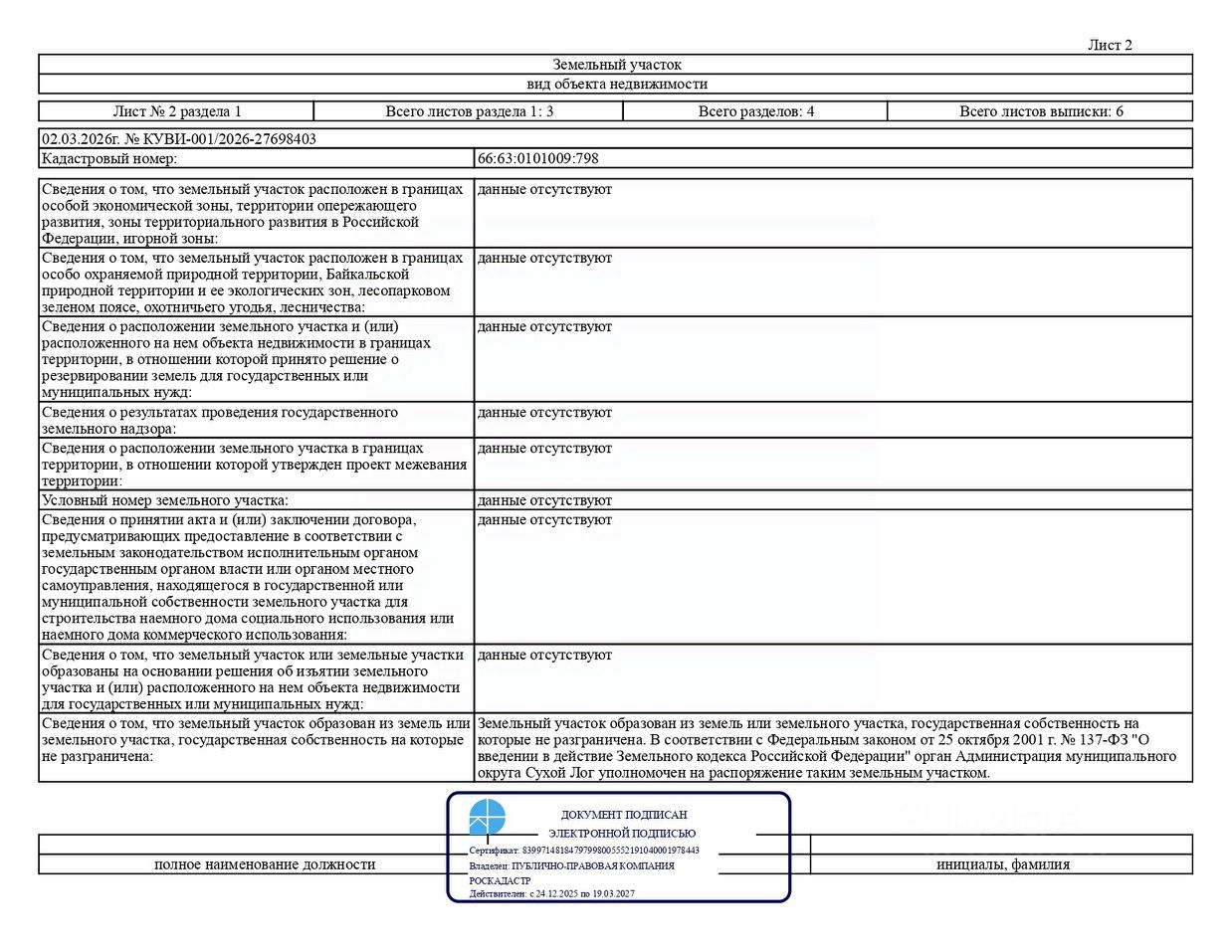 Лот 3 продажа земельного участка с кадастровым номером 66:63:0101009:798, расположенного по адресу: Свердловская область, Сухой Лог м.о, г. Сухой Лог, ул. Северная, земельный участок 20Б (категория земель земли населенных пунктов), вид разрешенного использования индивидуальное жилищное строительство (строительство жилого дома), общей площадью 1010 ,0 кв.м, территориальная зона Ж1 зона застройки индивидуальными жилыми домами в городских населенных пунктах (далее земельный участок) в границах, указанных в выписке из Единого государственного реестра недвижимости об объекте недвижимости.