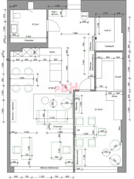 Мебель оставляем по согласованию.