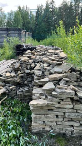 По периметру отсыпная прогулочная зона из плитняка.