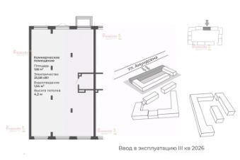 Преимущества объекта: востребованный формат площади для арендаторов. 1 этаж, удобный доступ для клиентов. Высокие потолки 4,2 м. Хорошая электрическая мощность 25,58 кВт. Подходит под торговлю, услуги, медицину, салон, кофейню, пекарню, аптеку, магазин. Помещение находится в новом современном жилом квартале. Перспективная локация с формирующимся постоянным пешеходным трафиком. Высокий потенциал роста стоимости после ввода и развития района.