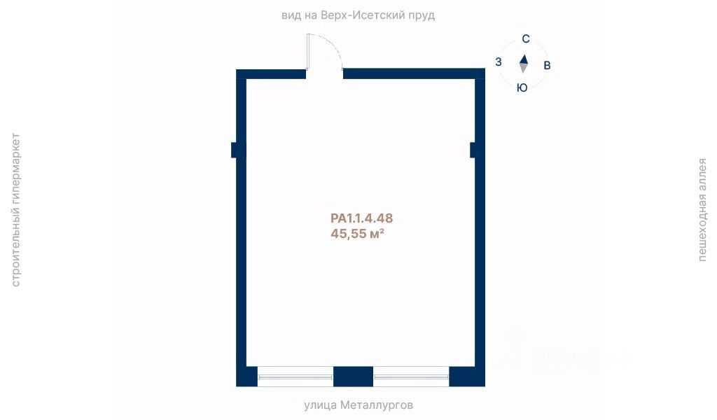 • Общая площадь45,55 м²