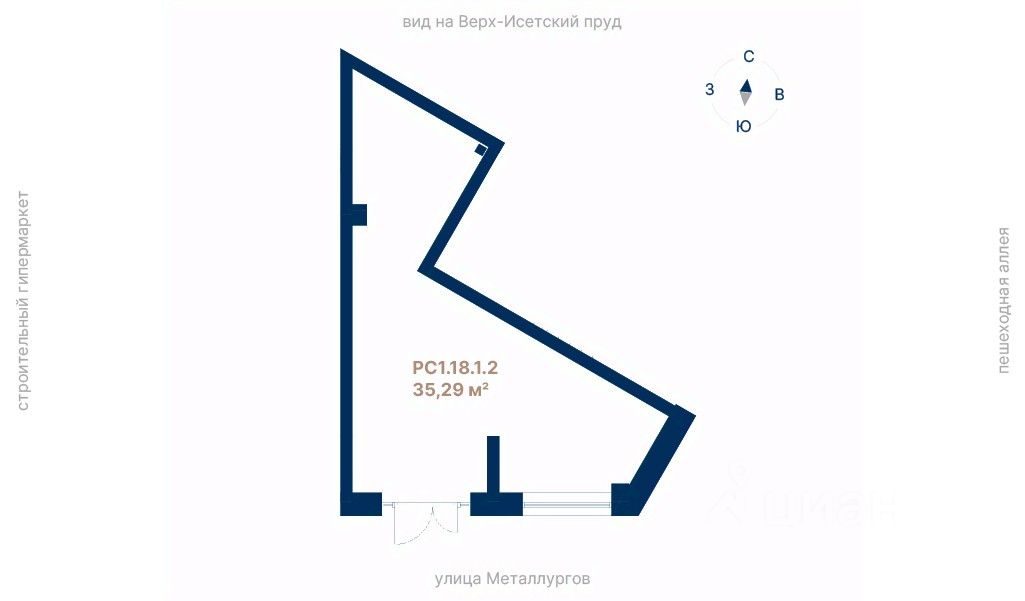 Площадь35,29 м²