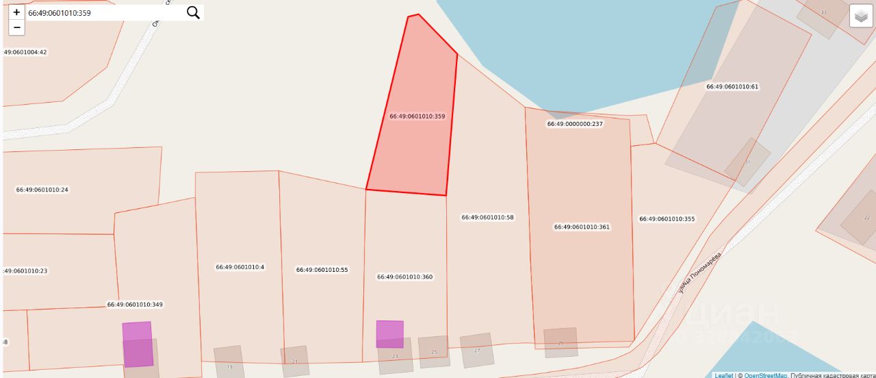 Земельный участок с кадастровым номером 66:49:0601010:359, общей площадью 1118,0 квадратных метров, местоположение: Свердловская область, город Кировград, посёлок Нейво - Рудянка, улица Пономарева, участок 25А