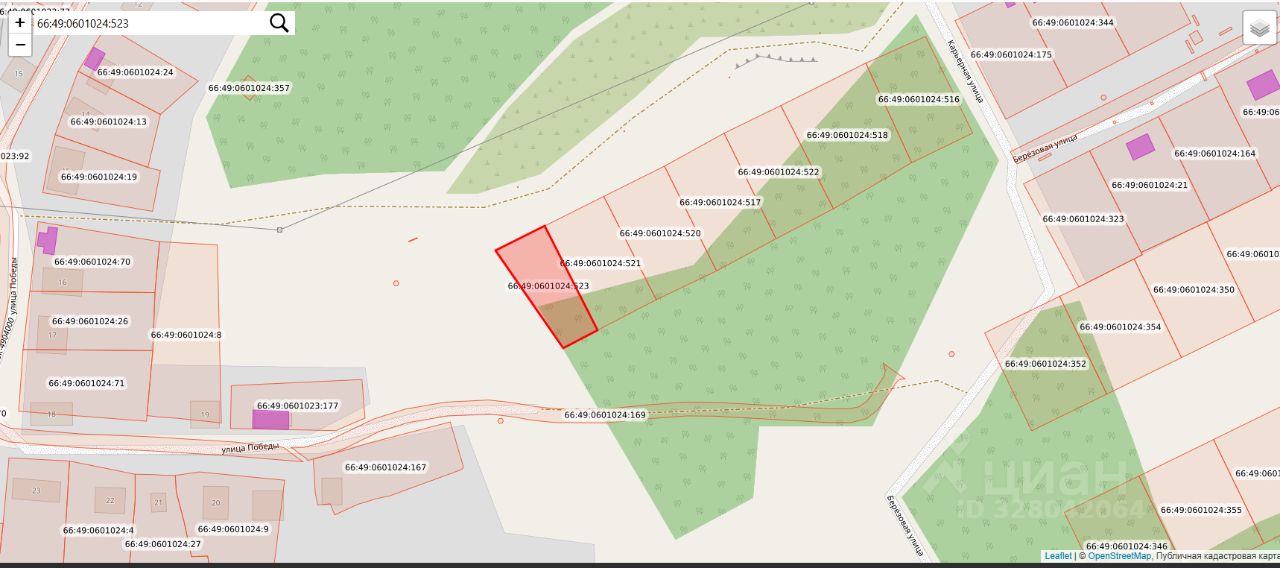 Земельный участок с кадастровым номером 66:49:0601024:523, общей площадью 1028,0 квадратных метров, местоположение: Свердловская область, город Кировград, посёлок Нейво - Рудянка, улица Карьерная, участок 19