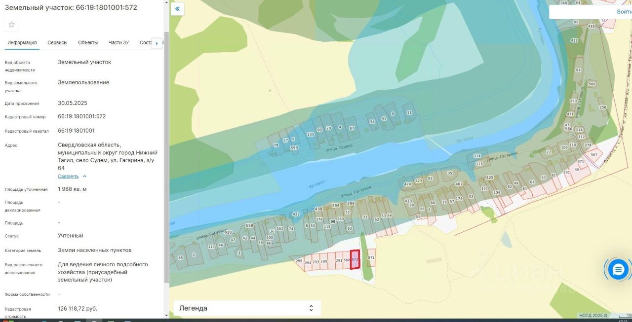 Лот 3. Земельный участок для ведения личного подсобного хозяйства. Категория земель земли населенных пунктов. Кадастровый номер 66:19:1801001:572. Местоположение: Свердловская область, муниципальный округ город Нижний Тагил, село Сулем, улица Гагарина, з/у 64. Площадь земельного участка 1988 кв. метров. Разрешенное использование земельного участка для ведения личного подсобного хозяйства (приусадебный земельный участок). Начальная цена (кадастровая стоимость земельного участка) 126 118 (сто двадцать шесть тысяч сто восемнадцать) рублей 72 копейки. "Шаг аукциона" 6 300 (шесть тысяч триста) рублей. Размер задатка 25 200 (двадцать пять тысяч двести) рублей