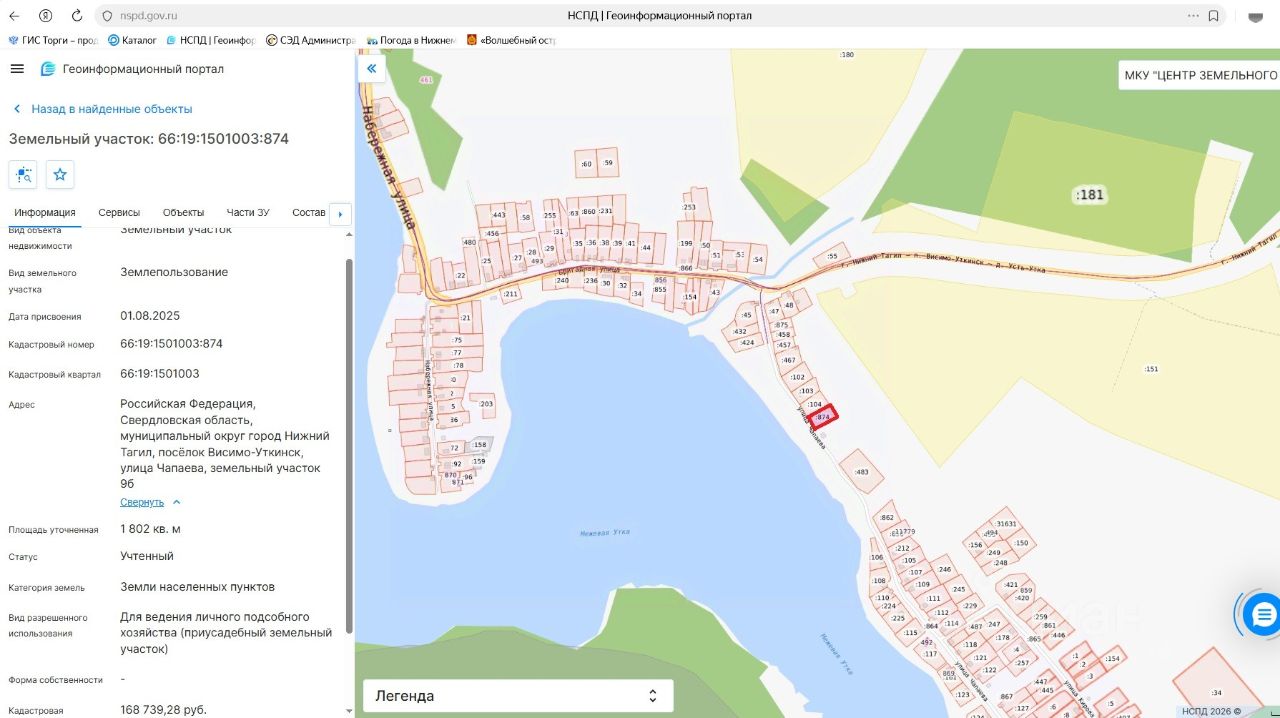 Лот 3. Земельный участок для ведения личного подсобного хозяйства. Категория земель земли населенных пунктов. Кадастровый номер 66:19:1501003:874. Местоположение: Российская Федерация, Свердловская область, муниципальный округ город Нижний Тагил, посёлок Висимо-Уткинск, улица Чапаева, земельный участок 9б. Площадь земельного участка 1802 кв. метра. Разрешенное использование земельного участка для ведения личного подсобного хозяйства (приусадебный земельный участок). Начальная цена (кадастровая стоимость земельного участка) 168 739 (сто шестьдесят восемь тысяч семьсот тридцать девять) рублей 28 копеек. "Шаг аукциона" 8 400 (восемь тысяч четыреста) рублей. Размер задатка 33 700 (тридцать три тысячи семьсот) рублей