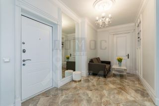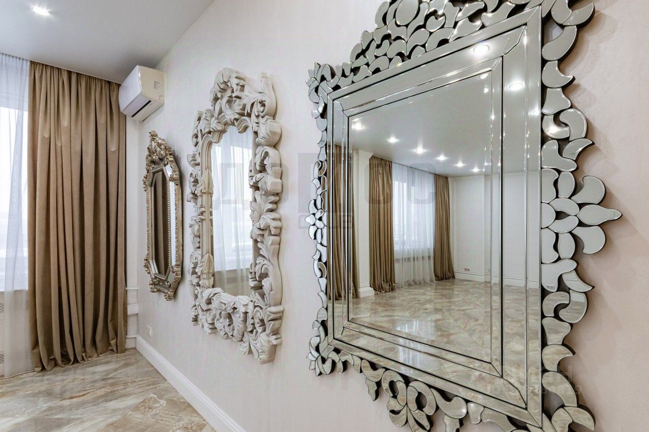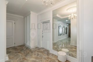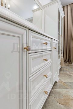 Встроенные шкафы в потолок из массива дерева - белая эмаль, зеркала под проект в пол, молдинги orac decor. Остаются: кухонный гарнитур, оборудованная гардеробная комната, корпусная мебель, дорогой текстиль выполненный на заказ, освещение.