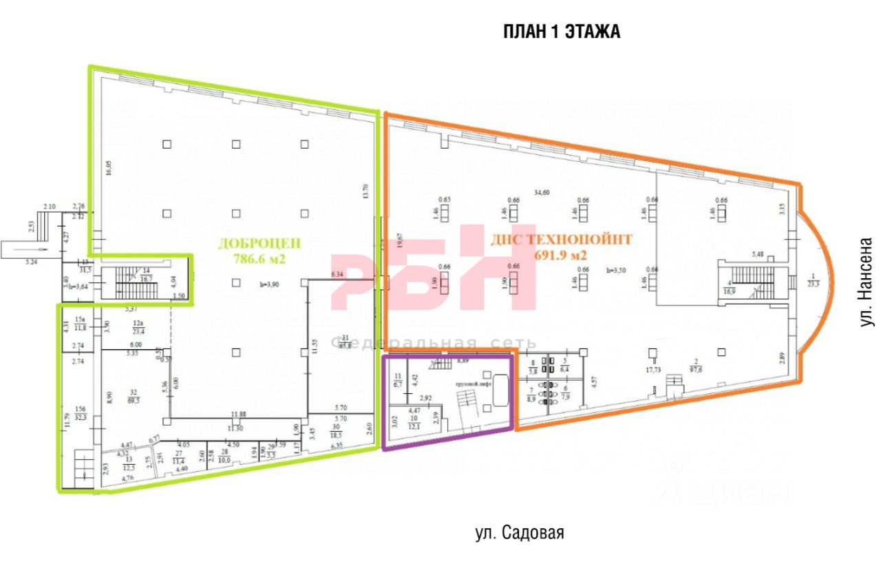 - на 1ом этаже расположены: ТС Доброцен, DNS технопойнт, на 2ом этаже: магазин "Семья", на 3ем этаже: магазин "Обувной рай";