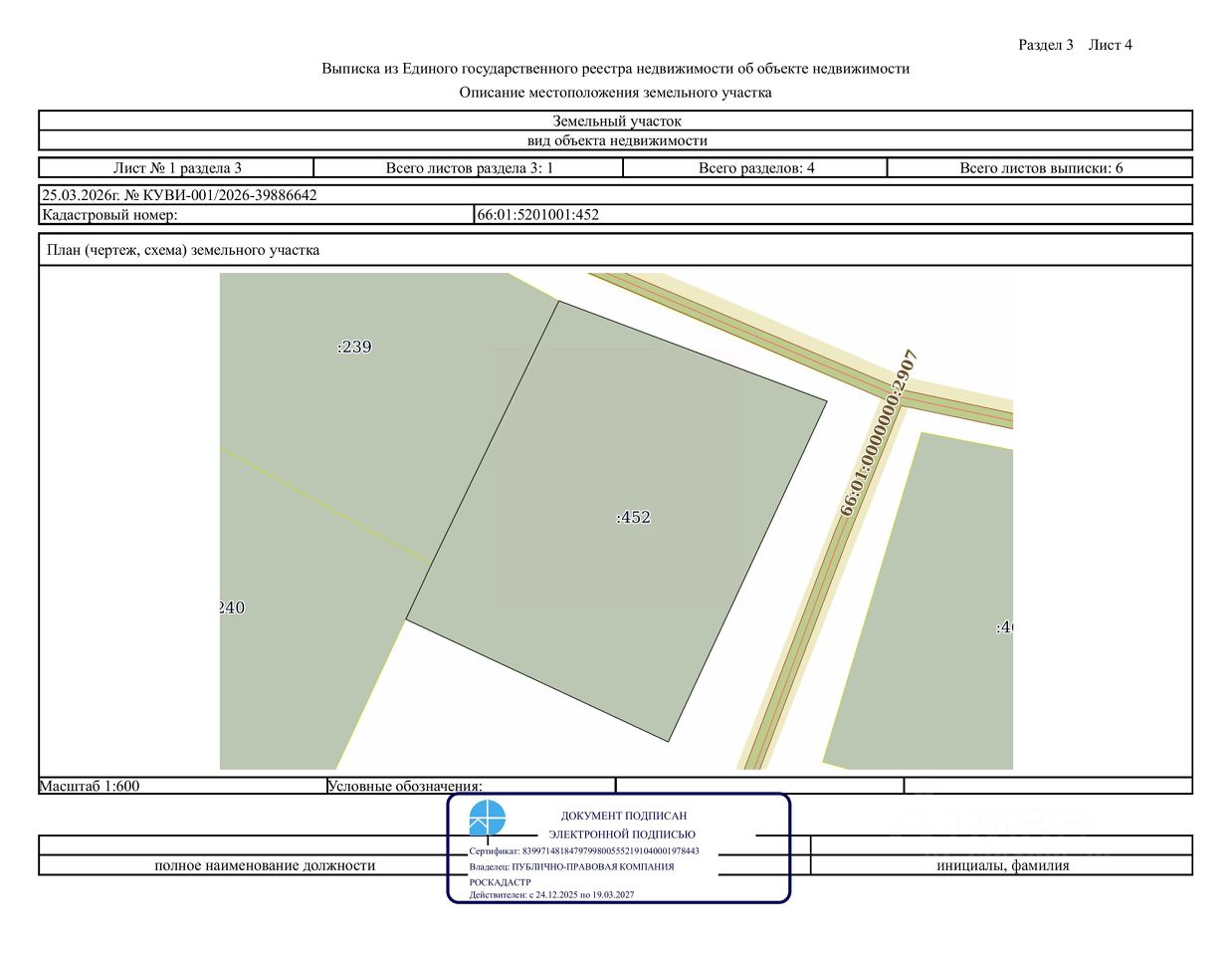 Земельный участок с кадастровым номером 66:01:5201001:452, местоположение: Свердловская область, Алапаевский район, д. Косякова, примерно в 285 метрах по направлению на север от дома 15 по ул. Набережная, категория земель земли населенных пунктов, вид разрешенного использования: для ведения личного подсобного хозяйства (приусадебный земельный участок), цель использования ведение личного подсобного хозяйства в границах населенного пункта, площадь - 1999 кв. м