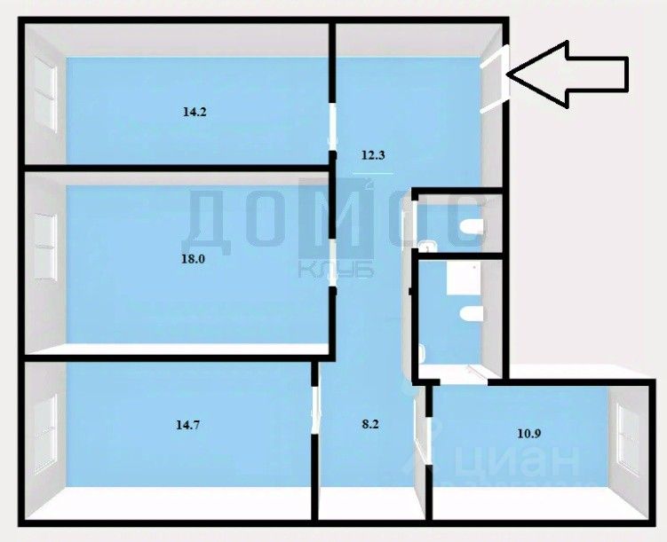 Продаётся отдельное нежилое помещение на 1 этаже кирпичного дома (сталинка). Вход с подъезда, дверь выходит на улицу - удобно для вывески и отдельного режима работы.