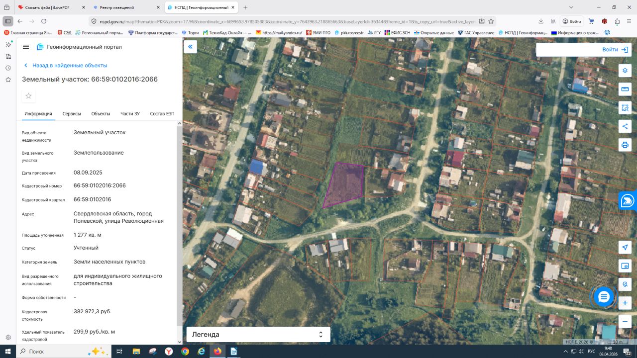 Земельный участок, расположенный по адресу: Свердловская область, город Полевской, улица Революционная, с кадастровым номером 66:59:0102016:2066, площадью 1277 кв.м, категория земель земли населенных пунктов, с видом разрешенного использования для индивидуального жилищного строительства