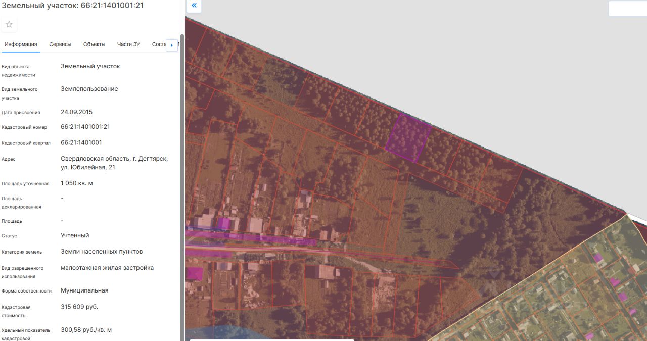 Кадастровый номер 66:21:1401001:21. Местоположение: Свердловская область, г. Дегтярск, ул. Юбилейная, 21, Площадь земельного участка 1050 кв.м.