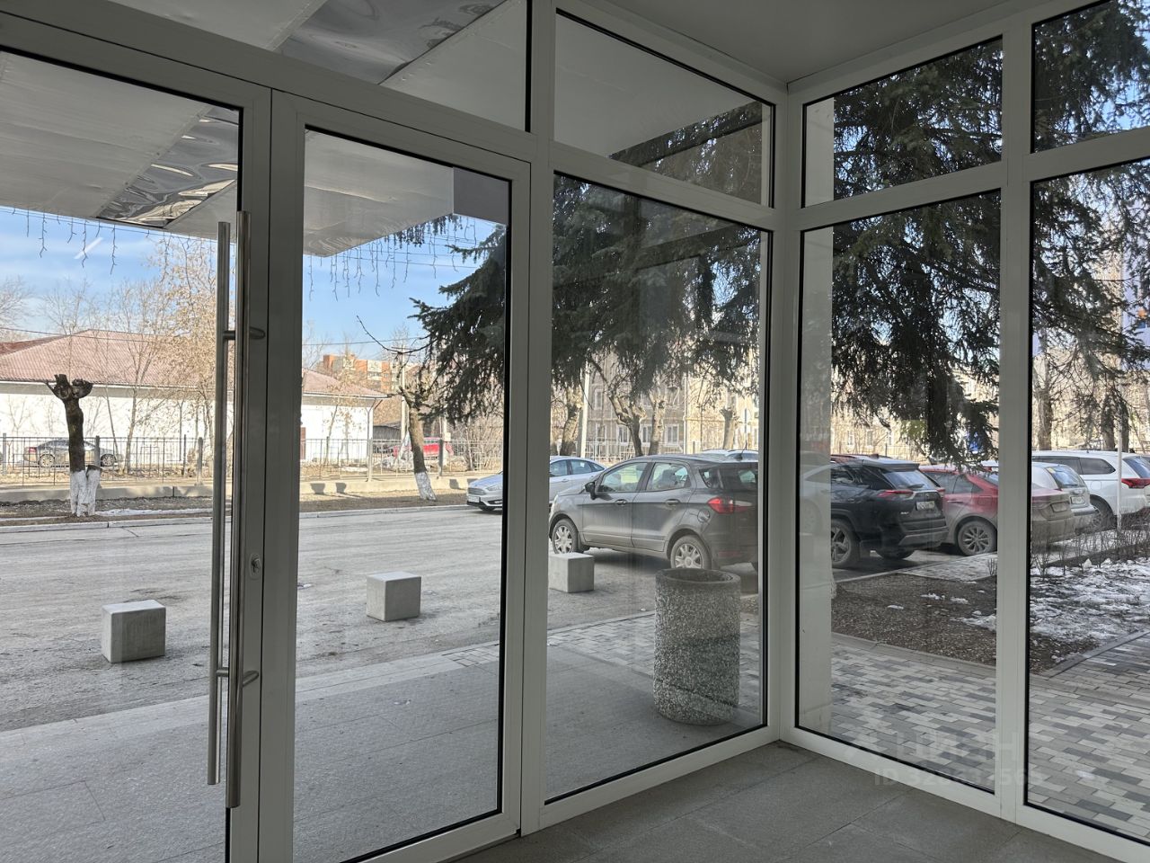 Презентабельная входная группа. Территория перед зданием благоустроена, высажены многолетние ели, организована вместительная наземная парковка.