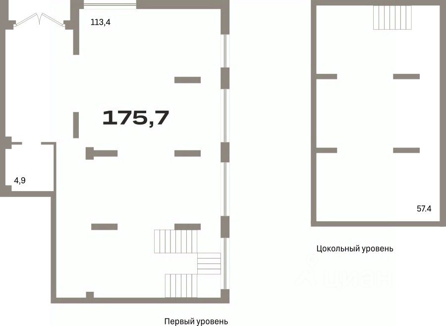 Помещение свободного назначения на 1 этаже, общая площадь 175.73 кв.м., без отделки. Стоимость помещения 36,150,000 руб., цена за кв.м 205,713 руб.