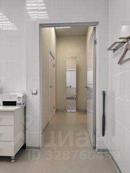 На полу выведены розетки для кресел и косметологического оборудования. Постелен коммерческий линолеум Tarkett. В с/у и сантехнической комнате керамогранит.