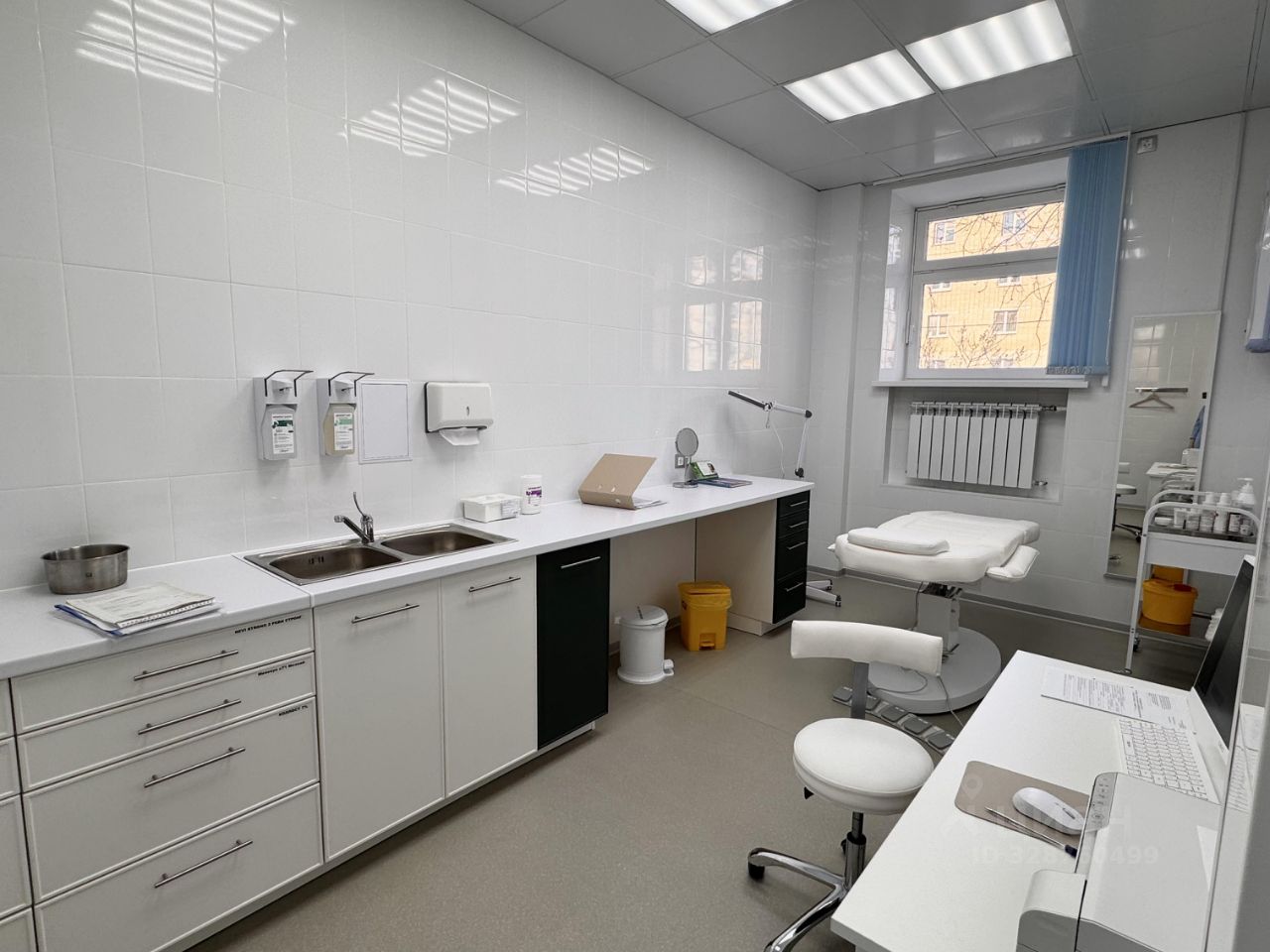 Двери увеличенной ширины на 900 из качественных, моющихся, пластиковых (специальных для лпу) дверей. Потолок из металлических кассет во всей клинике, чтобы иметь возможность добавить еще один светильник/колонку/камеру - то, что может потребоваться в ходе работ.
