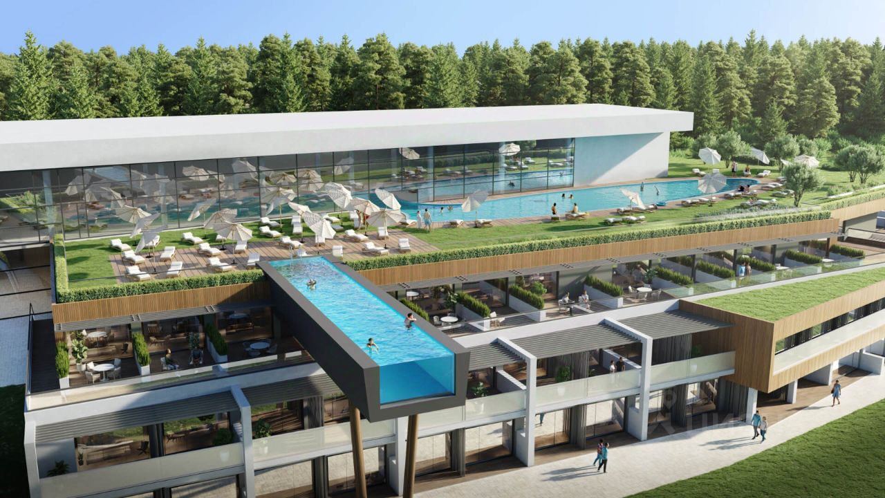 На территории: круглогодичный акватермальный курорт, подогреваемый инфинити-бассейн с панорамой на пруд и исторический центр Сысерти, кафе и рестораны, детский клуб, зоны отдыха и рестораном и выходом к благоустроенному пляжу.
