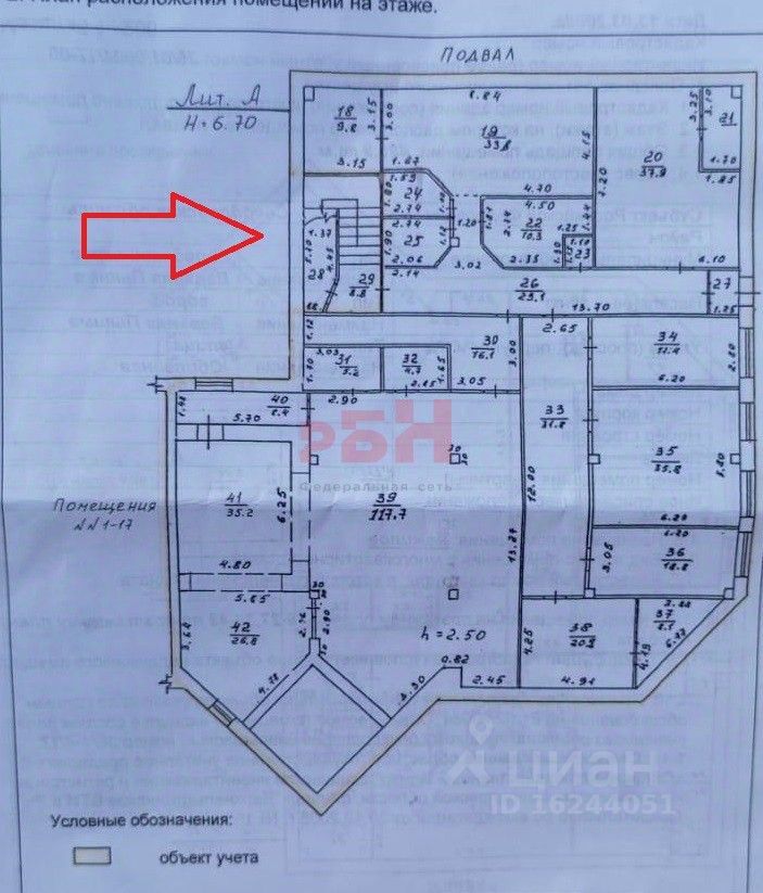 -находится в подвале административного 3х этажного здания;