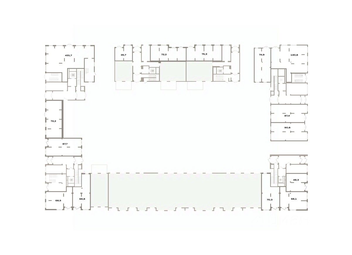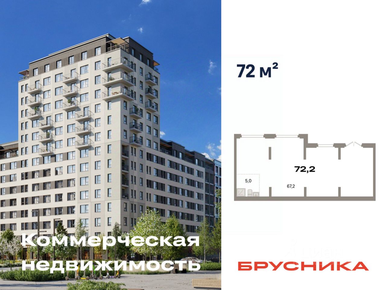 Помещение свободного назначения на 1 этаже, общая площадь 72.2 кв.м., без отделки. Стоимость помещения 15,160,000 руб., цена за кв.м 209,972 руб.