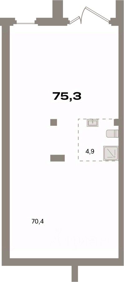 Помещение свободного назначения на 1 этаже, общая площадь 75.3 кв.м., без отделки. Стоимость помещения 16,850,000 руб., цена за кв.м 223,771 руб.
