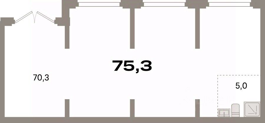 Помещение свободного назначения на 1 этаже, общая площадь 75.3 кв.м., без отделки. Стоимость помещения 15,790,000 руб., цена за кв.м 209,694 руб.