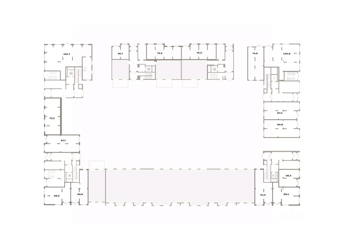 Помещение свободного назначения на 1 этаже, общая площадь 74.9 кв.м., без отделки. Стоимость помещения 15,720,000 руб., цена за кв.м 209,879 руб.