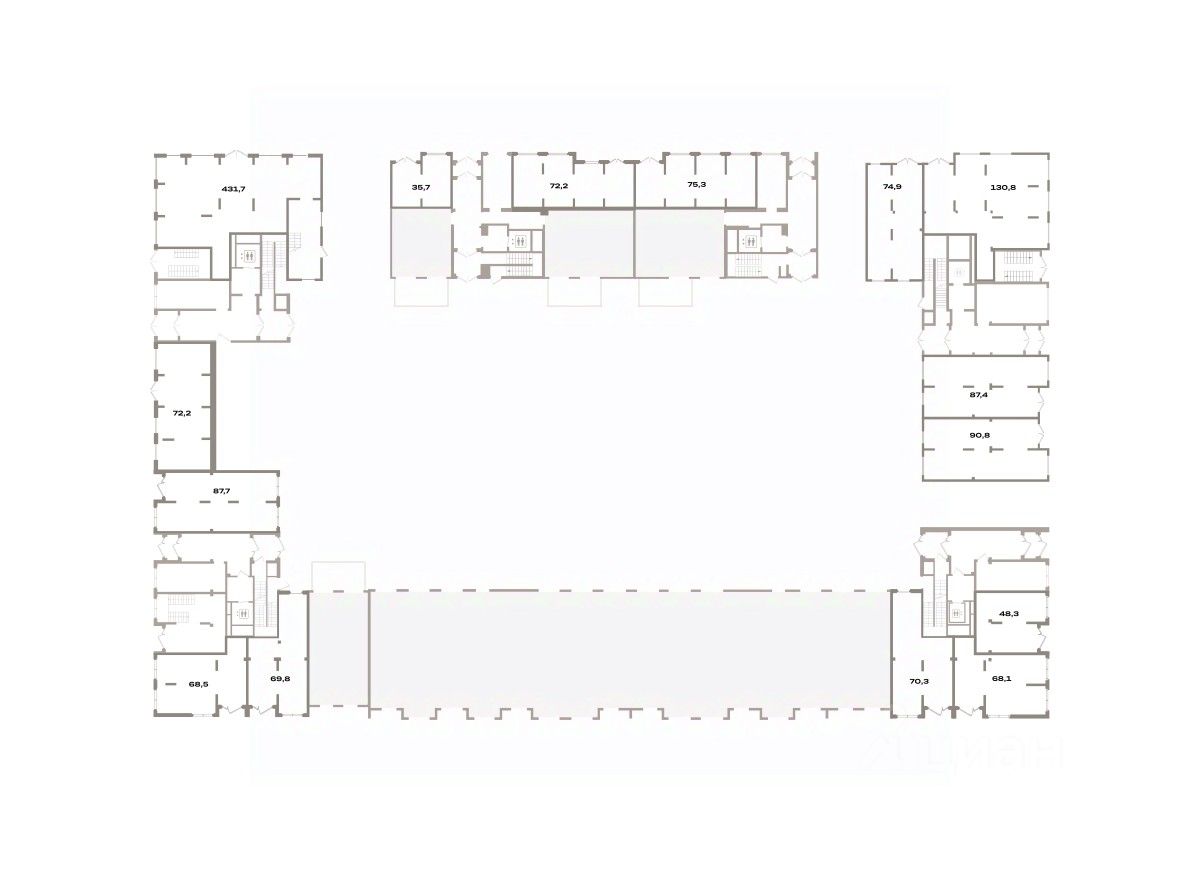 Помещение свободного назначения на 1 этаже, общая площадь 87.4 кв.м., без отделки. Стоимость помещения 19,050,000 руб., цена за кв.м 217,963 руб.