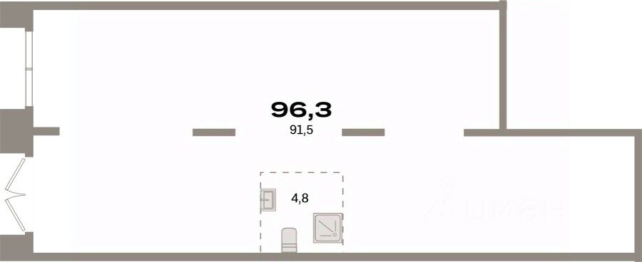 Помещение свободного назначения на 1 этаже, общая площадь 96.3 кв.м., без отделки. Стоимость помещения 22,490,000 руб., цена за кв.м 233,541 руб.