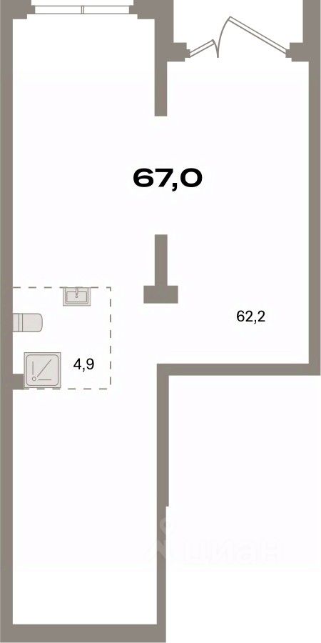 Помещение свободного назначения на 1 этаже, общая площадь 67 кв.м., без отделки. Стоимость помещения 15,060,000 руб., цена за кв.м 224,776 руб.
