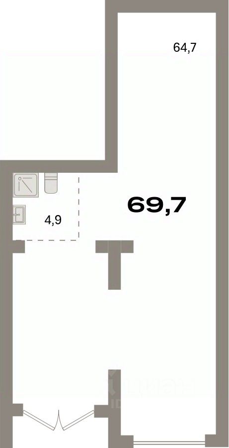 Помещение свободного назначения на 1 этаже, общая площадь 69.7 кв.м., без отделки. Стоимость помещения 14,860,000 руб., цена за кв.м 213,199 руб.