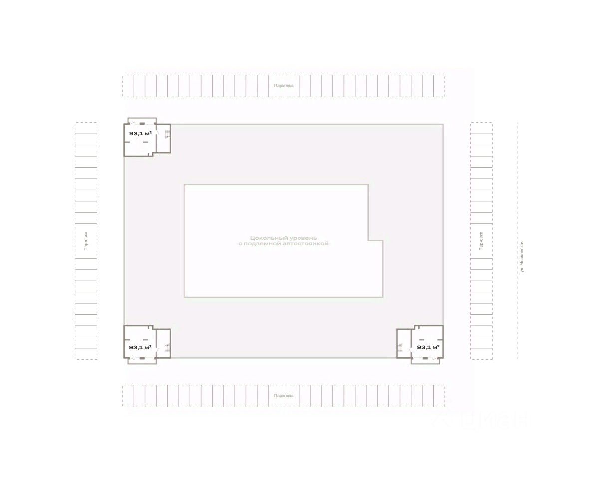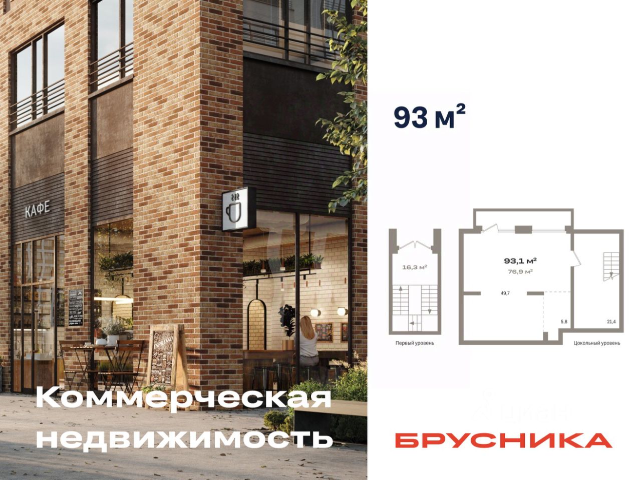Помещение свободного назначения на -1 этаже, общая площадь 93.1 кв.м., без отделки. Стоимость помещения 17,480,000 руб., цена за кв.м 187,755 руб.