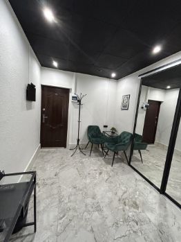 Пол шикарный керамогранит, входная сейф-дверь.