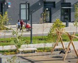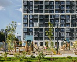 Проект включает шесть домов и многоуровневый паркинг. На первых этажах открываются кафе, магазины и полезные сервисы. А в уютных дворах-парках есть детские и спортивные площадки.