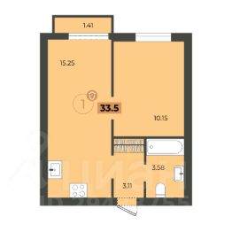 - Kуxня-гоcтинaя 15.25 кв.м. с выходом на балкон 1.41 кв.м.