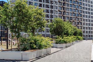 Особое внимание в проекте уделено внутреннему дворовому пространству: во дворе выполнен ландшафтный дизайн с оригинальными клумбами, деревьями, кустарниками и вечерней подсветкой. Безопасность домов обеспечивают камеры наблюдения, расположенные по периметру зданий, в местах общего пользования, на этажах и лифтах.