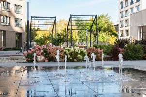 Особое внимание в проекте уделено внутреннему дворовому пространству: во дворе выполнен ландшафтный дизайн с оригинальными клумбами, деревьями, кустарниками и вечерней подсветкой. Безопасность домов обеспечивают камеры наблюдения, расположенные по периметру зданий, в местах общего пользования, на этажах и лифтах.