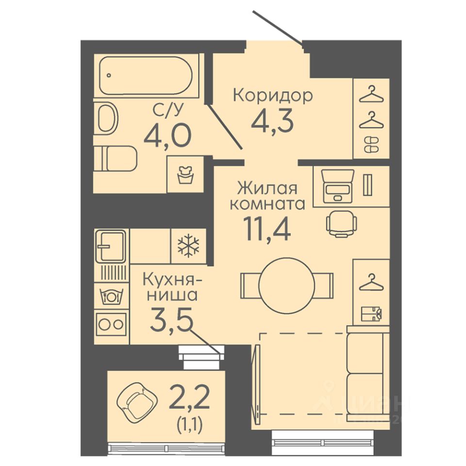 Жилая площадь11,4 м²