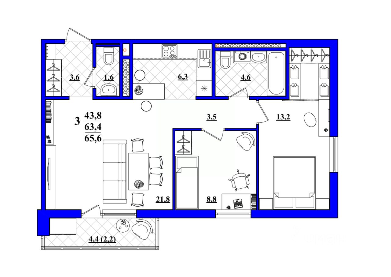 Продаётся 3-комнатная квартира в строящемся доме (Дом 3), срок сдачи: III-кв. 2026, общей площадью 65.6 кв.м., на 7 этаже. 10-ти этажный 100-квартирный дом спроектирован по технологии крупнопанельного домостроения. Характеристики современных 3-х слойных панелей с эффективным утеплителем соответствуют современным требованиям СНиП по теплозащите для районов Урала и Сибири. Применение панельного домостроения позволяет предлагать покупателю жилье по наиболее доступной цене.