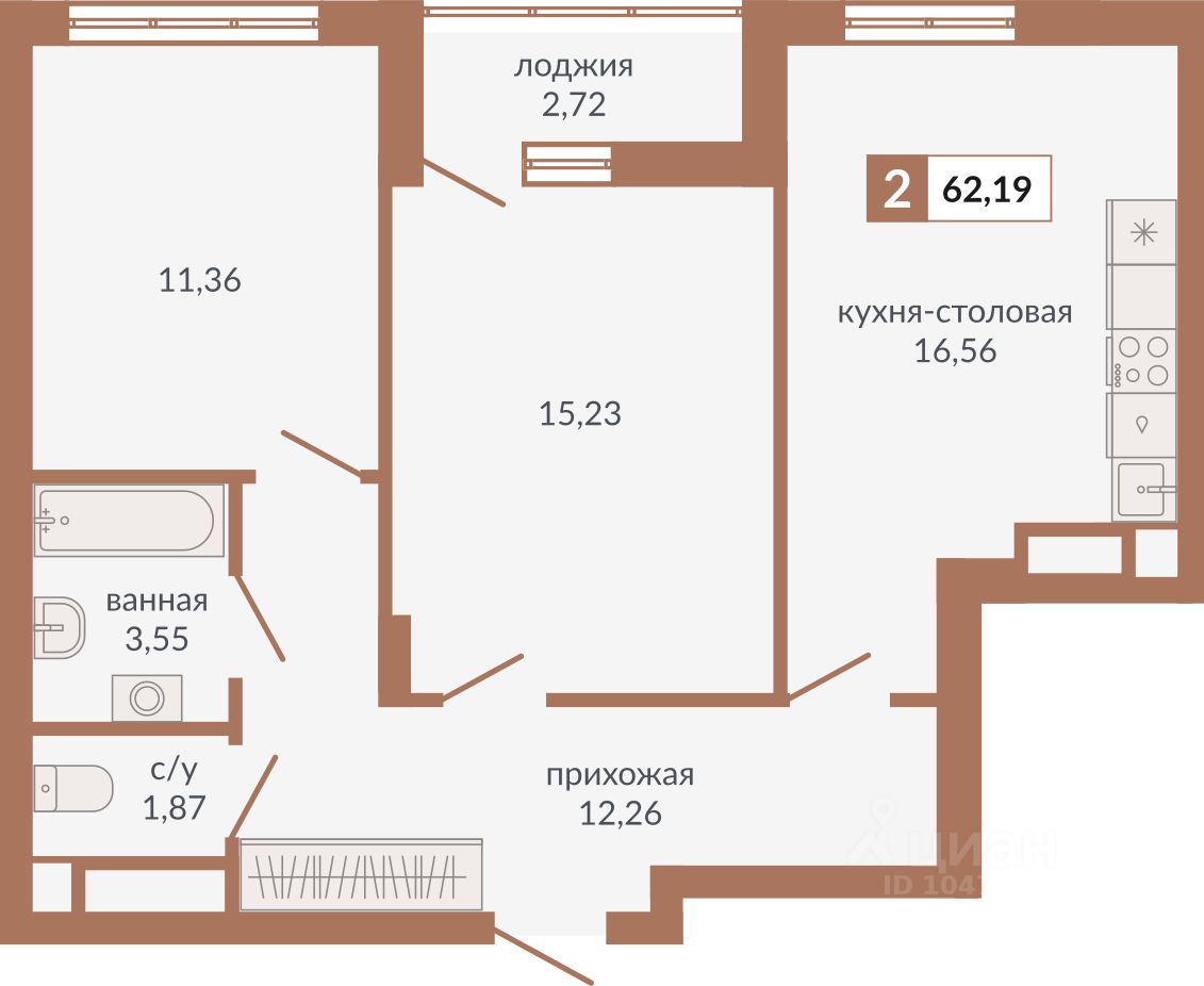 Продается Двухкомнатная квартира в новом жилом квартале "Видный" в районе ВИЗ. Квартира находится на 8 этаже, общей площадью 62.19. Строительство разделено на две очереди.